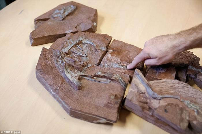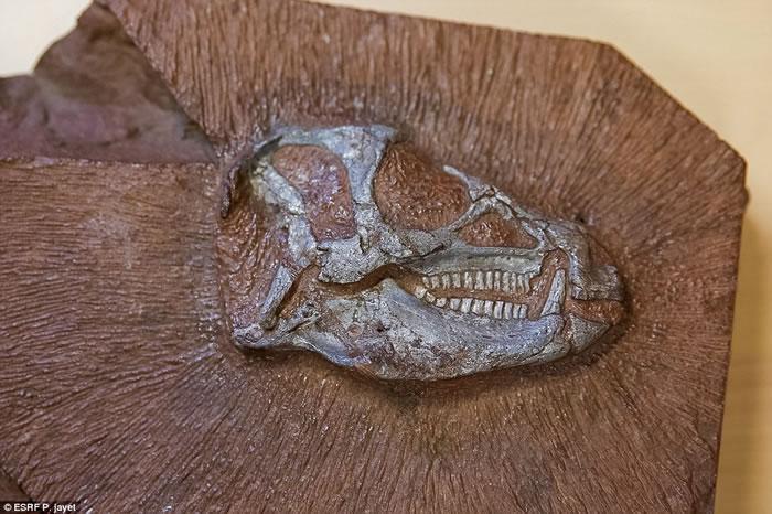 为了发现这具骨骼化石,科学家在法国使用欧洲同步加速器辐射源(ESRF)分析了5天时间,扫描发现了畸齿龙的完整骨骼。
