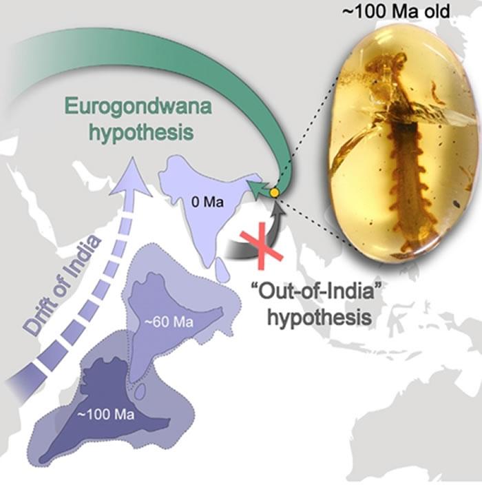 最后,印度分布的梯栉蚕属与缅甸栉蚕琥珀✝Cretoperipatus形态上较为接近。研究人员确定印度分布的栉蚕应该是在印度板块与亚欧板块碰撞后的第二阶段(2500万年前),才从亚欧板块扩散而来。