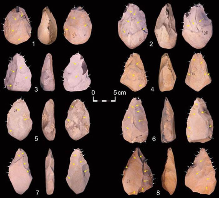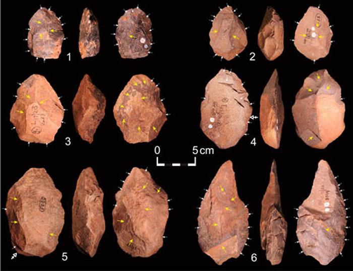 距今50万年的Cave of Hearths遗址出土的部分手斧标本 (李浩供图)