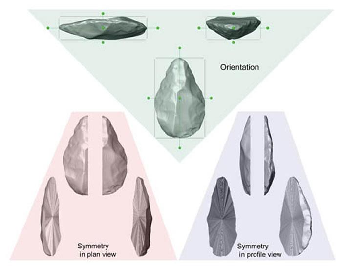 手斧正视和侧视下的对称性定量分析图示(李浩供图)