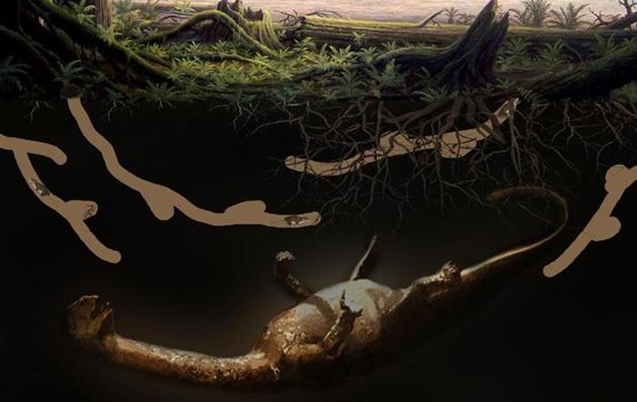(化石网报道)据新浪科技:近日,中国地质大学(北京)、自贡恐龙博物馆等单位的科学家在北京宣称,他们在四川自贡发现一侏罗纪时期的四足动物巢穴遗迹,该遗迹与恐龙骨骼化石伴生埋藏,这是在我国首次发现与恐龙伴生的四足动物巢穴遗迹。