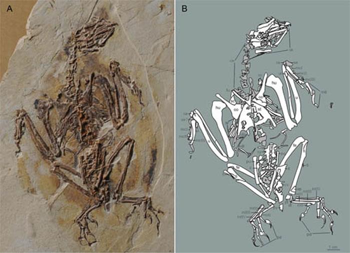 新发现的四合当孤反鸟正型标本死亡时处于一个从未发现过、特殊而罕见的个体发育阶段,其中间软骨已经骨化,但尚未与其他近端跗骨以及胫骨相愈合,显示出与今鸟亚纲成员相似的骨骼愈合模式。为了探讨反鸟类的复合骨愈合顺序,此次研究挑选了代表不同个体发育阶段的已发表反鸟标本,并观察研究了五块主要的复合骨以及胸骨在这些标本中的愈合情况,得出了关于早白垩世反鸟类复合骨愈合顺序的初步结论:绝大部分早白垩世反鸟类标本都可以被归入四个主要的个体发育阶段:所有骨骼未愈合;荐椎和尾综骨愈合;跗骨愈合;胫跗骨和腕掌骨愈合。