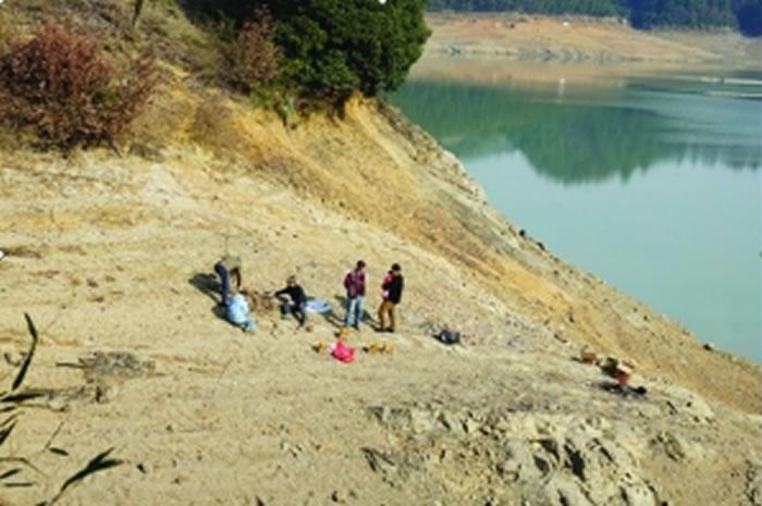 古生物学家发现大量海绵化石的安吉赋石水库岸边