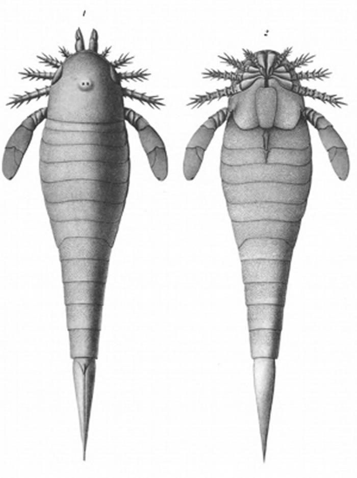 怎么证明有这些生物呢?张元动说,在安吉动物群化石中,都能找到这些动物的化石。比如鲎,它是地球上唯一的蓝血海洋生物,现在大家还能看到的鲎,长得像蟹。在安吉生物群中,就有休米勒鲎化石,头部有很多附肢,是用来划水游泳的,像船桨一样。