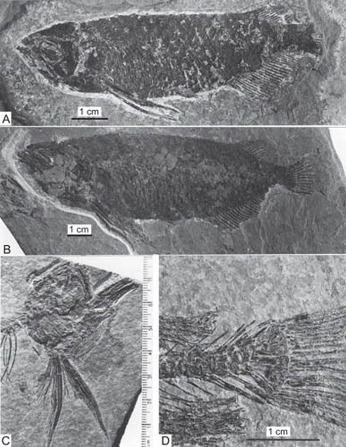 在最新一期《古脊椎动物学报》上,中国科学院古脊椎动物与古人类研究所张江永研究员和加拿大阿尔伯塔大学Mark Wilson教授报道了在我国首次发现的骨舌鱼科金龙鱼属一新种:中华金龙鱼(Scleropages sinensis)。中华金龙鱼化石标本保存完美,产于湖南湘乡始新统下湾铺组和湖北松滋下始新统洋溪组。中华金龙鱼化石的发现,为研究金龙鱼属(Scleropages)和骨舌鱼属(Osteoglossum)的分化时间提供了直接的证据,说明金龙鱼属和骨舌鱼属在早始新世以前就已经分化,这对解释骨舌鱼类的跨洋分布具有十分重要的意义。