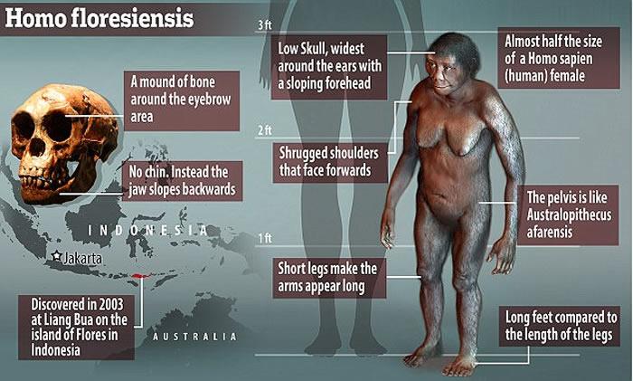 专家从9副“哈比人”化石中,估计他们由中亚内陆出走时,途中被海啸冲走而留到弗洛勒斯孤岛上落地生根,此人种更存活至约5.4万年前。负责研究的教授阿格(Debbie Argue)指出,“哈比人”可能从非洲移居各地,或是其祖先移居至各地后才进化而成。