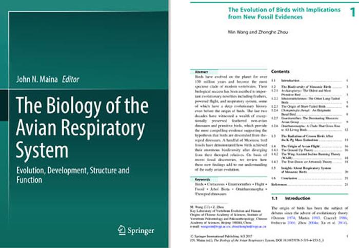 (化石网报道)据中国科学院古脊椎动物与古人类研究所:2017年5月,中国科学院古脊椎动物与古人类研究所的王敏与周忠和结合近年来发现的鸟类化石,以及基因组对现生鸟类谱系关系的研究结果,对鸟类的演化进行了讨论,特别是在鸟类演化过程中“扮演重要角色”的特征,如羽毛、飞行能力、骨骼和呼吸系统等,该成果发表在施普林格(Springer)出版的《The Biology of the Avian Respiratory System》一书中。