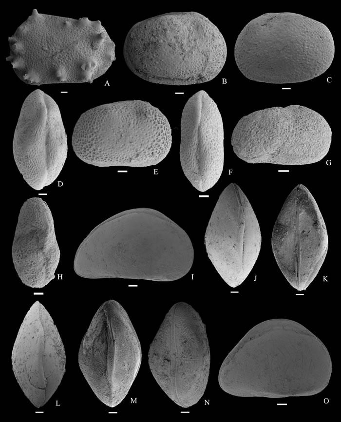 松辽盆地晚白垩世部分介形类化石属种 标尺=100 μm