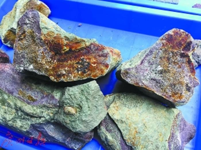在小件的化石中,记者还留意到一颗鼓槌状的紫色化石,直径约3厘米,赵灿辉称其“可能是脚趾的关节部位”。