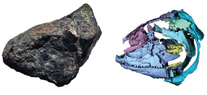 长背鳍阜康鱼头骨的立体保存及CT识别图(徐光辉供图)