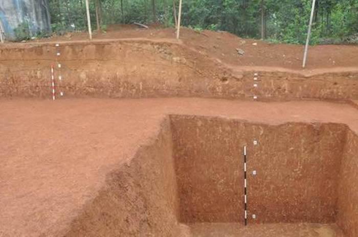 ⑥层:棕褐色典型网纹土,短而粗的灰白色网纹呈蠕虫状密集分布,含有大量的褐色铁锰结核膜。土质非常致密坚硬。揭露厚50厘米,未发掘至底。据坡体出露情况推测,此层往下约4~5米可至底部砾石层。