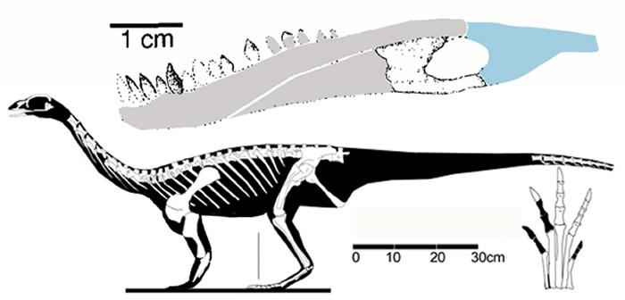 20年前最早发现这种恐龙化石的巴西圣保罗大学里贝朗普雷图逻辑学、科学和文学院教授马克斯·朗热说:“伸长脖子和头骨缩小是这类恐龙的身体特征,初步的研究表明这种体态是为了捕捉食物。”
