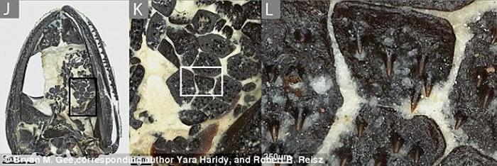然而,因为这些骨板挂在软组织上,所以石化时骨板上的细齿经常会散落或遗失。研究指,这类牙齿明显比嘴边的牙齿短几十至几百微米。专家更指,如果这些远古的两栖动物有惊人的牙齿数量,为何许多现代两栖动物的牙齿数量会减少甚或完全没有,则是另一个有待探索的大题目。