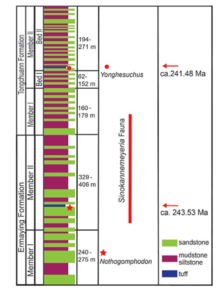 此外铜川组二段二带底部的标志层得出2.418亿年的结果,位于拉丁期底界附近。永和鳄的时代也确定为拉丁期,远早于以前的认识。据此推测铜川组可能只是拉丁阶下部,上三叠统还在狭义的延长组里面。