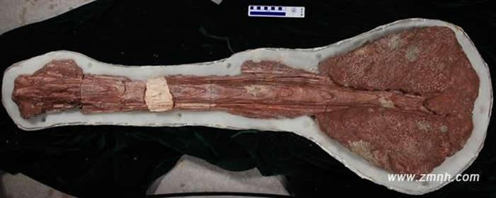 到了2013年3-4月,在工地现场发现不少恐龙骨骼化石,抢救性挖掘了大量甲龙类化石。其中,包括恐龙头骨、背椎、尾锤、骨化腱、肋骨、肱骨、肠骨、坐骨、股骨、胫腓骨、趾骨等;另外,还有一些恐龙蛋、兽脚类恐龙牙齿。