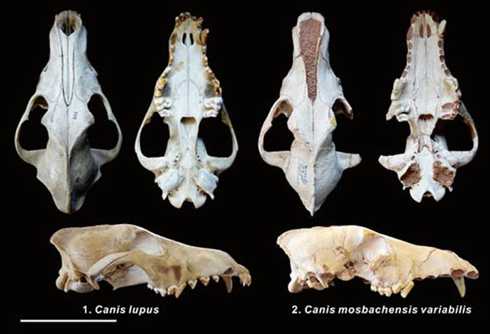 近日,古脊椎所博士研究生江左其杲,其导师刘金毅研究员和捷克科学院Jan Wagner在《国际第四纪》(Quaternary International)杂志在线发表关于周口店变异狼的修订工作。研究表明变异狼和欧洲的莫斯巴赫狼(C. mosbachensis)十分接近,可以归入后者作为一个亚种,即变异莫斯巴赫狼(C. mosbachensis variabilis)。