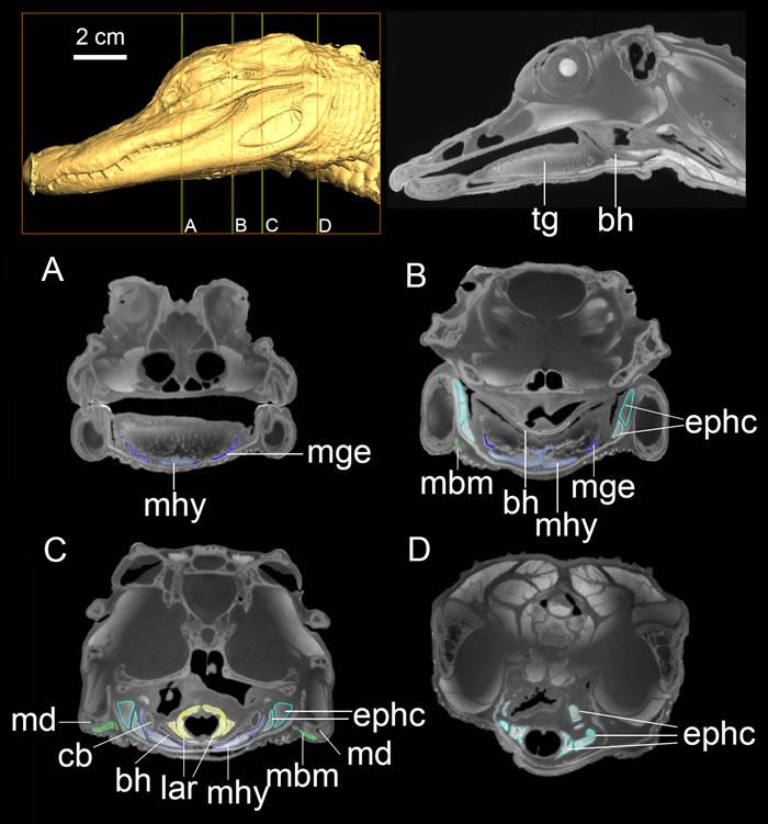 基于恐龙、翼龙和现代鳄鱼、鸟类之间的亲缘关系,该项工作比较了恐龙、翼龙、短吻鳄和现代鸟类的舌骨及相关肌肉,以及这些性状在不同谱系中的演化趋势。比较解剖的研究工作主要通过利用杰克逊学院高精度X-射线断层扫描以及增强CT造影所获取的高精度图像以及三维重构完成,对比标本包括了大量的现代标本的舌骨,分别来自3个短吻鳄以及13种现代鸟类(从鸵鸟、鸸鹋、鸭子和鹌鹑);还包括11个化石种类的舌骨,这些化石主要来自中国的热河生物群,包括小型的似鸟恐龙、翼龙甚至暴龙,由于舌骨在化石中的保存较为罕见,这些标本完好的舌骨显得尤为珍贵。