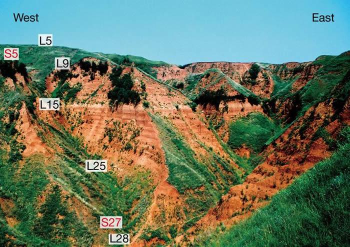 朱照宇介绍道,这一旧石器文化序列的年代主要是根据上陈地区发育良好的连续的黄土——古土壤地层剖面的鉴定以及高密度古地磁定年技术所确定的。这个地层剖面的中下部(S15至L28)有17个层位都含有人工制品,其中,石制品主要发现于潮湿温暖气候下形成的11个古土壤层中。此外,他分析,这17个文化层的时间跨度长达约85万年,显示了古人类可能在212万年到126万年前曾反复地(不一定连续地)生活在中国黄土高原。