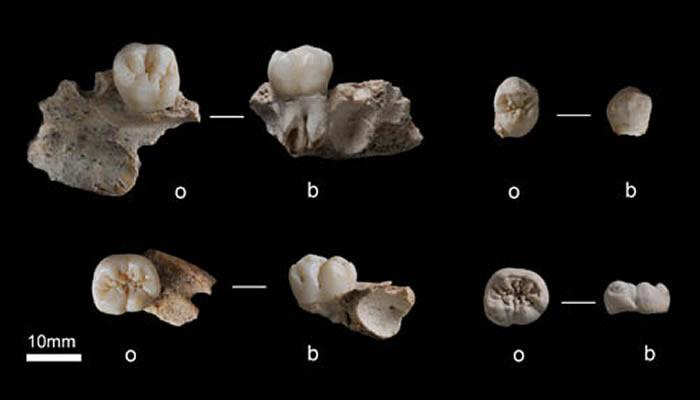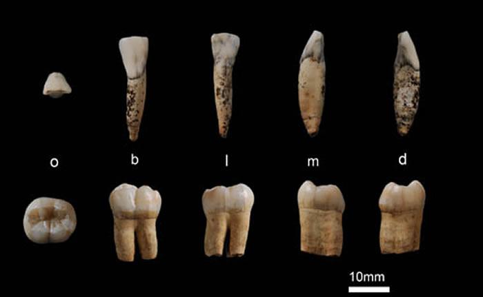 栾川孙家洞发现的古人类下门齿和臼齿化石(赵凌霞供图)