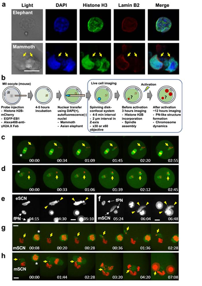 (化石网报道)据观察者网:朝日新闻3月11日报道,日本近畿大学的一个研究团队在《科学》上发表报告,他们将来自约2万8千年前的猛犸化石中的细胞移植入小白鼠中,成功诱发了细胞核的运动。这是猛犸象“复活”工作的巨大进展。