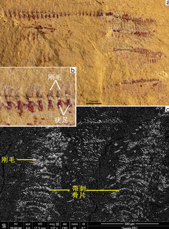 (化石网报道)据西北大学地质学系(李琛):北京时间3月20日晚,西北大学早期生命研究团队韩健研究员等人与英国剑桥大学合作的研究成果《中国发现寒武纪早期具骨片的多毛类》在《自然》旗下的《科学报道》杂志在线发表。韩健等在云南澄江生物群中发现了两个已知最古老多毛类新属种——古扇虫和中华隐刚毛虫。其中古扇虫应该是目前已知多毛类化石中保存最为原始特征的环节动物,对于探索环节动物门起源具有独特意义。该项目得到国家自然科学基金、引智计划以及先导计划等项目共同资助。