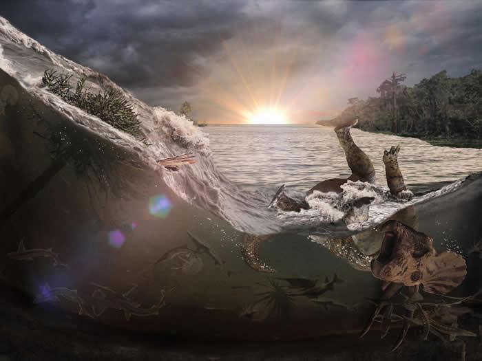 研究人员推测,一颗巨型小行星6600万年前在现今墨西哥希克苏鲁伯陨石坑处撞击地球,引发灾难性地震海啸。这次撞击是目前已知地球经历过的最具毁灭性时刻,导致包括恐龙在内的75%地球动植物灭绝,为后来人类崛起铺平道路。