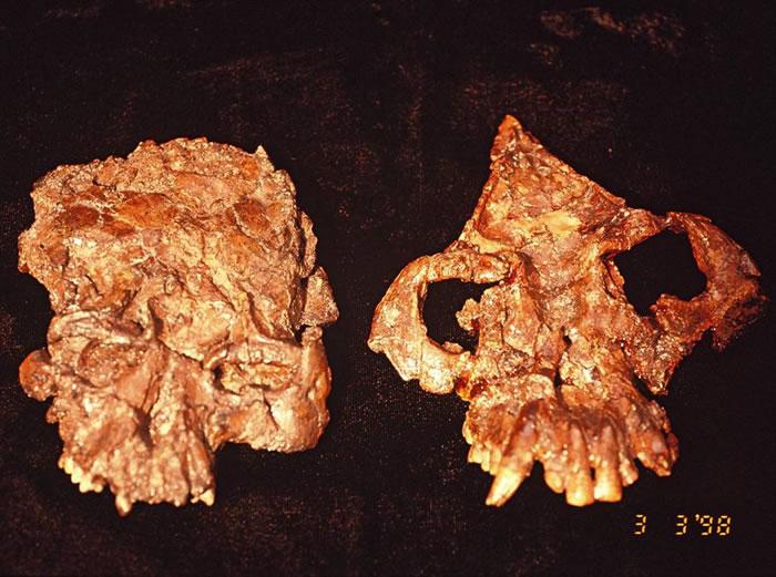 禄丰古猿头骨, 左曾经发表为为腊玛古猿,现修正为禄丰古猿的雌性(吉学平供图)