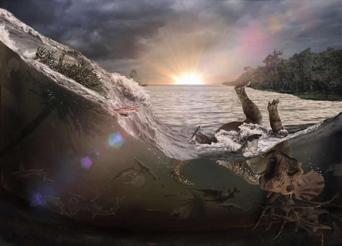 在美国《国家科学院学报》4月1日发表以及由《纽约人》周刊在上周最早宣布的一项新的研究中,一个科学家团队对大量保存完好的在希克苏鲁伯流星撞击地球前后时刻生活和死亡的动物和鱼类的化石进行了分析。科学家们长期以来一直假设认为,这块撞入墨西哥尤卡坦半岛并在希克苏鲁伯镇附近形成一个长93英里、深12英里陨石坑的岩石曾导致了地球上75%动植物的灭绝。虽然希克苏鲁伯陨石很可能并非恐龙死绝的唯一原因(气候变化和火山活动加剧当时也曾让环境承受了极大压力),但那个时候正是白垩纪结束以及即将出现哺乳动物崛起的时期。