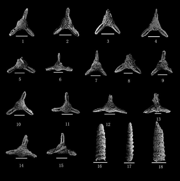 放射虫(Radiolaria)是一类单细胞的深海浮游生物,分布广泛,演化迅速,具有重要的生物地层学意义。由于放射虫硅质的骨架可以在碳酸盐补偿深度(CCD)以下的深海区得以保存,因此在确定深海相地层的时代上起到独特甚至关键的作用。在板块碰撞带中,放射虫硅质岩常是蛇绿岩套的重要组成部分,记录了已消失的古海洋的沉积历史。