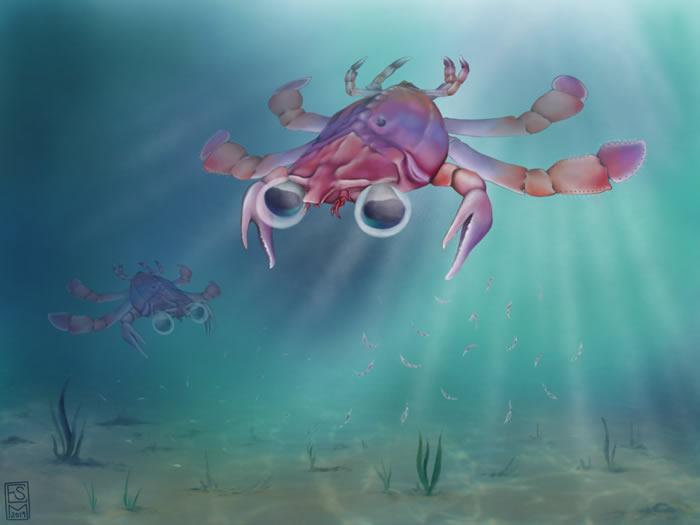 此外,所发现的螃蟹有球状眼睛和两个小天线。