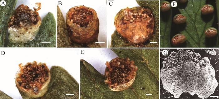 锥叶蕨属植物(G)及其相关类群的孢子囊形态特征