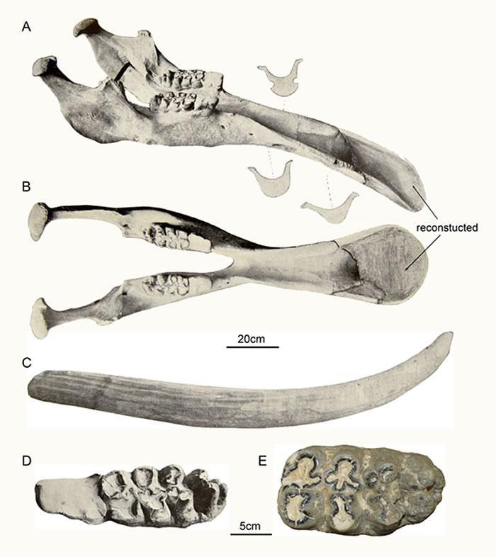 颌铲象标本图,主要根据Barbour and Sternberg(1935)(李春晓 供图)