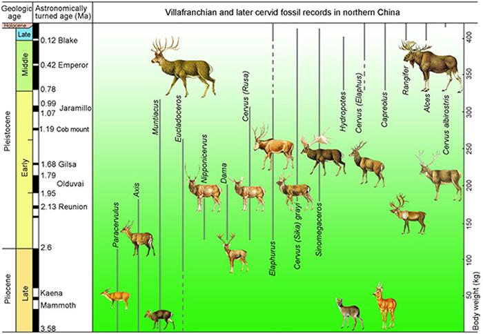 维拉方期以来我国北方鹿类动物的体重估算及地史分布(同号文供图)