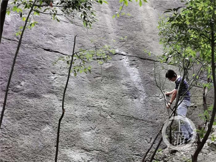 那这处“恐龙足迹”是如何被发现的?华龙网-新重庆客户端记者随后也联系上第一个发现足迹的登山者“景随心”。“景随心”告诉华龙网-新重庆客户端记者,今年3月,他从川外女生宿舍旁的道路上歌乐山,进行登山。他本是打算前往歌乐山后山,但途中却迷了路,在找路中无意间看到一块岩壁上有几个凹凸不平的痕迹。从事地质工作的他敏感地觉得,这几处痕迹可能是恐龙留下的脚印。