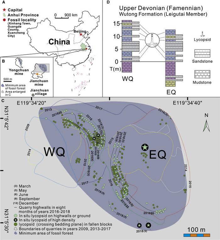 安徽省新杭镇附近发现亚洲最大泥盆纪森林