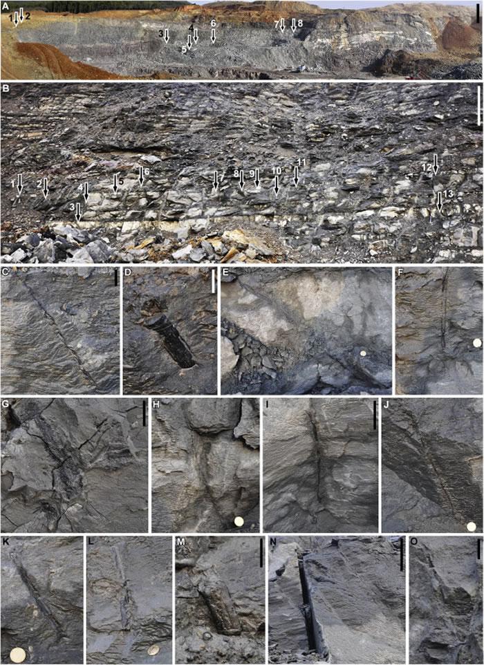 研究人员在黏土采石场发现了这些树木化石,化石分布于4米厚的砂岩层上下。一些化石包含松果状结构的大孢子,研究人员用化石树干的直径估计了树木的高度。他们表示,要在不遗漏任何东西的情况下标记和计数所有的树是很困难的。