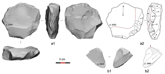 文章作者的研究从对勒瓦娄哇概念的理解、到研究方法的使用、再到最基本的具体石制品技术阅读皆存在明显的缺陷。首先,最基本、当然也是最关键的一个问题是论文作者对勒瓦娄哇这一概念的误解和误用。该文虽然引用了目前最广泛接受的定义,即Boёda教授创建的从技术分析的角度运用6个特定的技术特征作为标准来识别勒瓦娄哇技术,但在辨识勒瓦娄哇技术时却采用了一种自称为“整体的方法”(holistic approach),从Boёda的技术标准中只挑选了其中的一两条来界定勒瓦娄哇技术及其产品。从方法论上讲,上述的6项技术标准的实质是从技术的角度来定义勒瓦娄哇的“结构”,而非定义其形态,表明勒瓦娄哇概念是包含一系列技术决策的体系。石器分析者需要整合石制品组合反映的所有信息,特别是标本上可见的所有片疤的方向、顺序、数量和组织方式等信息,才能识别和理解勒瓦娄哇产品的“结构”,并最终归纳和提炼出整个石制品组合的“操作链”。一两条技术标准并不足以界定勒瓦娄哇技术。举例而言,文章作者认为具有层级关系的两个石核面(hierarchical relations)和优先剥片(preferential removal)的石核可被认定为勒瓦娄哇石核,然而很多简单的以石片腹面为剥片面进行剥片(core-on-flake)的石核符合此特征,但它们显然不是勒瓦娄哇石核。
