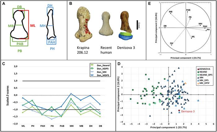 E. Andrew Bennett等人通过使用DNA提取物和测序技术将缺失的片段与原始片段进行匹配以捕获其完整的线粒体DNA序列。然后,他们重新分析了这些碎片的扫描和照片,并将它们与来自尼安德特人的手指骨以及更新世和处于不同发展阶段的近来的现代人进行了比较。研究人员发现的这个指骨是一个青春期女性丹尼索瓦人右手的第五根指骨,其死亡年龄可能在13.5岁。