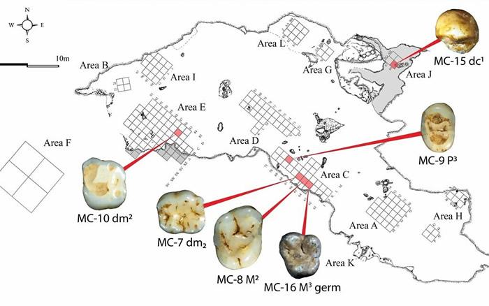 研究人员通过微型CT扫描和3D分析发现,这6颗牙齿化石至少属于5个不同的人,其中4颗牙齿化石可以被检测。在这4颗牙齿中,1颗牙齿具有典型的现代人(智人)的特征,1颗牙齿虽然具有尼安德特人特征但特征模糊,另外两颗牙齿则明显结合了尼安德特人与现代人的特征。