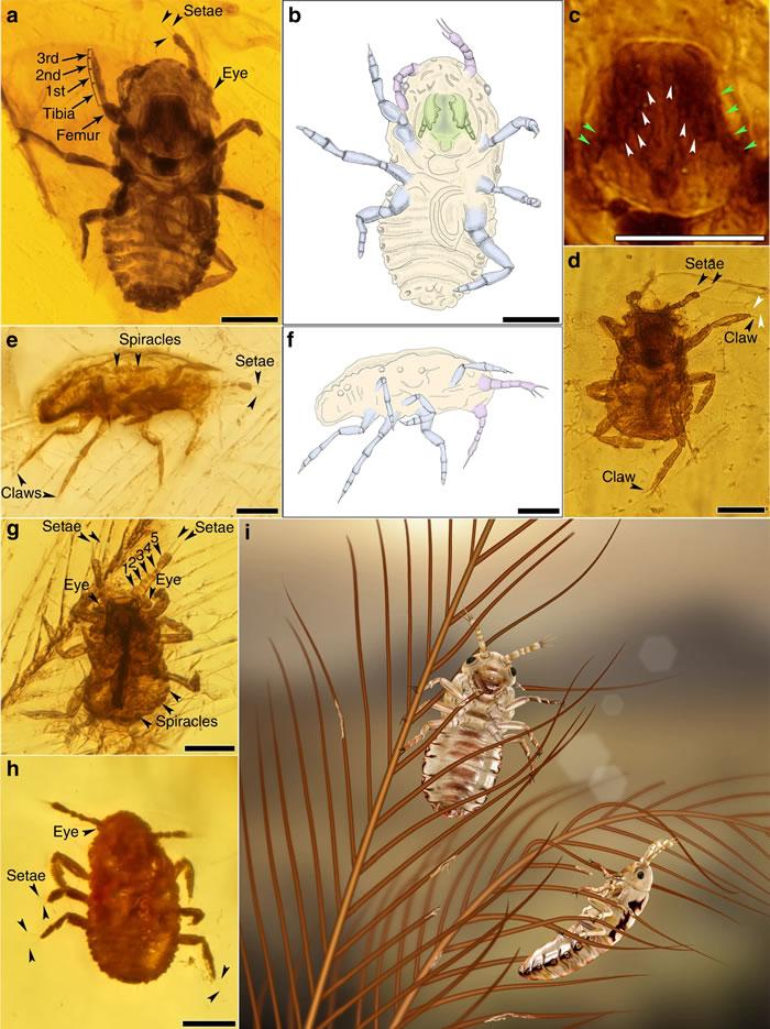 北京首都师范大学任东团队、美国华盛顿哥伦比亚特区史密森学会国家自然历史博物馆史宗冈团队及合作者,分析了来自缅甸北部的两块琥珀中与两根恐龙羽毛一同保存下来的10个昆虫若虫。研究人员表示,这些无翅昆虫有着类似于现代虱的躯体模式,尤其是它们还有很强壮的咀嚼式口器。