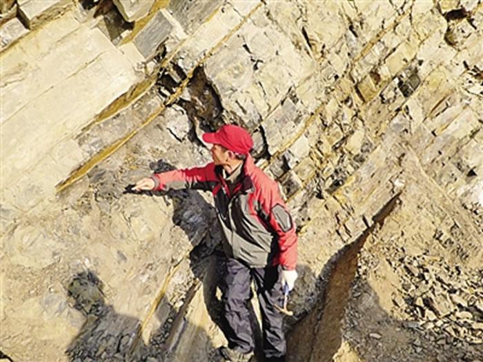 但在云南永善县,研究人员发现了一段连续完整的、出露良好的奥陶系—志留系界线剖面。“这段剖面黑色页岩和灰岩相互夹层,地质学上一般认为,黑色页岩在深水中形成,而灰岩则在浅水中才能沉积下来。因此,这个地方记录了当时此地水位深浅的变化,完整保留了首次生物大灭绝期间的化石沉积物记录。”詹仁斌说。