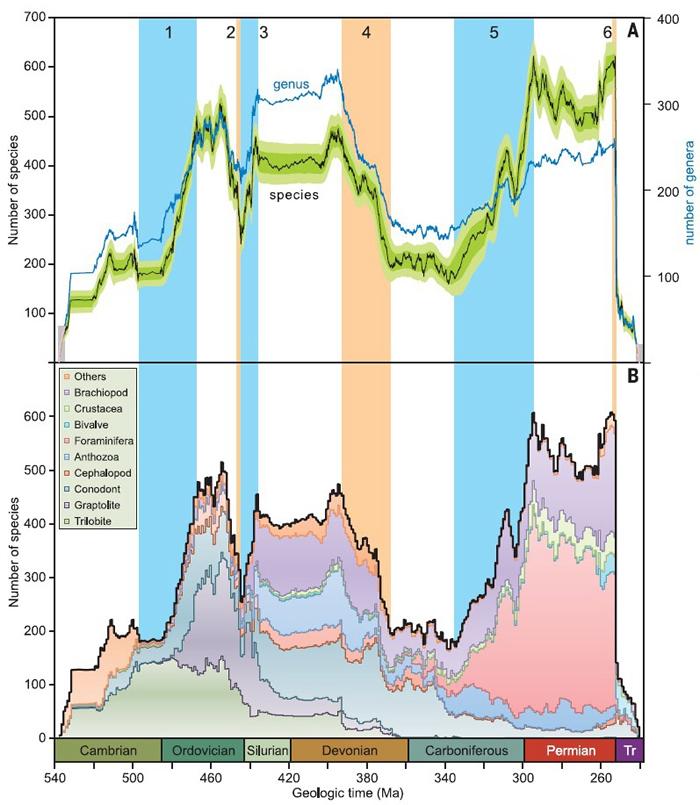 新建立的多样性变化曲线,更准确地重现了地质历史中最大的三次生物灭绝事件和两次重大生物辐射事件的精细过程。