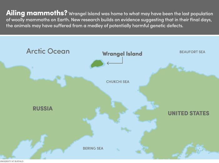 这张地图显示了最后幸存猛犸象的位置--弗兰格尔岛(Image credit: Rebecca Farnham / University at Buffalo)