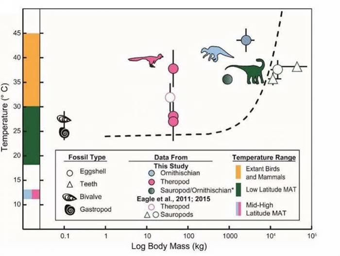 那么,是当时的环境就有这么温暖,还是恐龙靠自己维持了上述体温?研究人员又分析与这些恐龙同时期生活在同一地区的一些冷血软体动物的化石,推断有的软体动物体温约为26摄氏度,这反映了当时环境的温度。