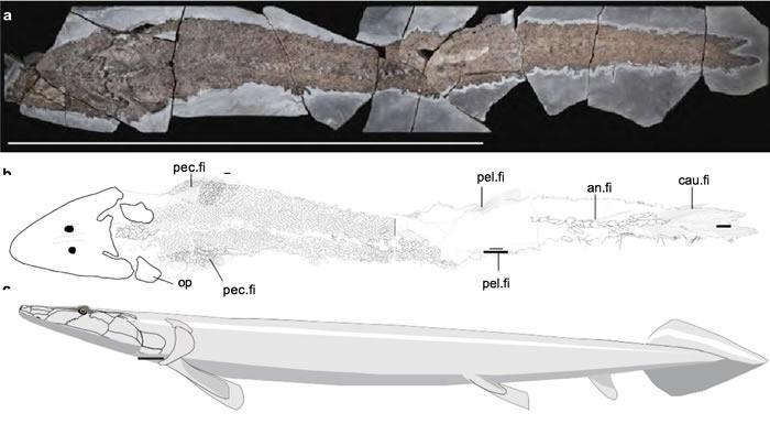 (化石网报道)据中国科学报(冯维维):根据本周《自然》发表的一项研究,一块鱼类化石显示,其胸鳍拥有手指样附体,这为理解脊椎动物的手的起源带来了线索。这块化石是迄今最完整的希望螈样本,希望螈据信代表了鱼类向陆地脊椎动物过渡的演化阶段。