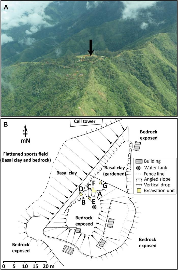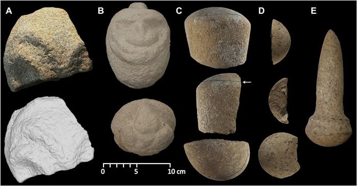 为了更好地了解该地区随着农业的传播有着怎样的生活,Ben Shaw等人从最近被发现的Waim考古遗址挖掘了一批人造器物并对其进行了检查。Shaw说:“真正令人兴奋的是,这些文物是第一次在地下被发现,这令我们如今能通过放射性碳测年来确定它们的年代。”研究人员分析了一个描绘某个人或动物面部眉脊的石刻碎片,一个完整的顶部栖息着一只鸟的人头石刻(由Waim的居民发现)以及两个表面带有薯蓣、水果及坚果淀粉痕迹的打磨过的石杵碎片。他们还发现了一个黑曜岩芯,它为长距离、离岸黑曜石贸易以及可能曾经树立房屋柱材的柱坑提供了第一个证据。