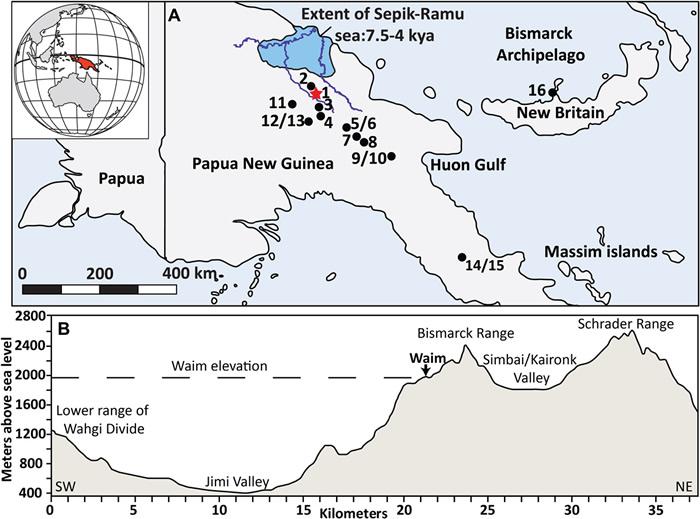 (化石网报道)据EurekAlert!:在新几内亚高原地区的Waim考古遗址中发现的新的人造器物(包括大洋洲最早的一个象征性石刻的碎片)说明了人类行为在5050至4200年前之间为因应农业的广泛兴起而发生变化,开启了一个与欧亚大陆新石器时代相似的区域性新石器时代。该遗址的文物的位置和样式提示存在着一个固定的家庭空间和象征性的文化习俗,隐示该地区开始独立地发展出了新石器时代的标志,它们比来自东南亚的Lapita耕种者到达新几内亚的时间早约1000年。尽管科学家们已经知道,湿地农业起源于8000至4000年前的新几内亚高地,但很少有相应的如同发生在世界其它地区的社会变化证据。