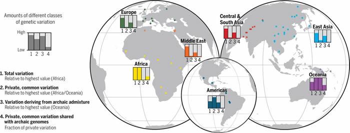 Bergstrom和同事对来自全球54个不同群体的929人的基因组进行了测序,这些群体来自欧洲、中东、非洲、美洲、中亚、南亚、东亚和大洋洲。
