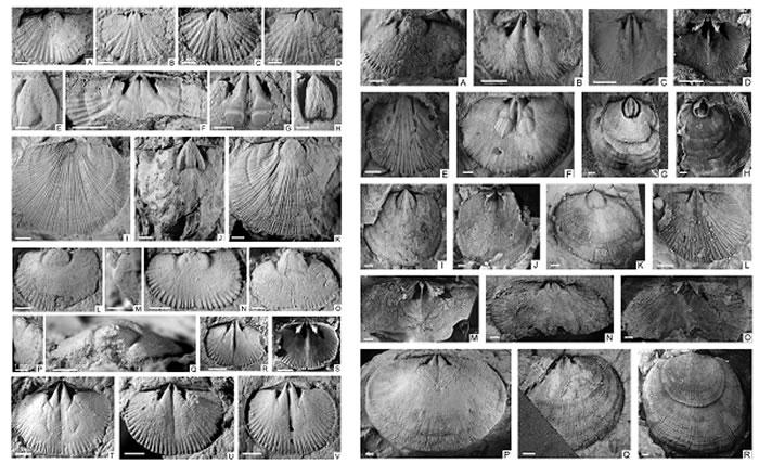 缅甸(左)与滇西(右)赫南特贝动物群中的代表性腕足动物属种