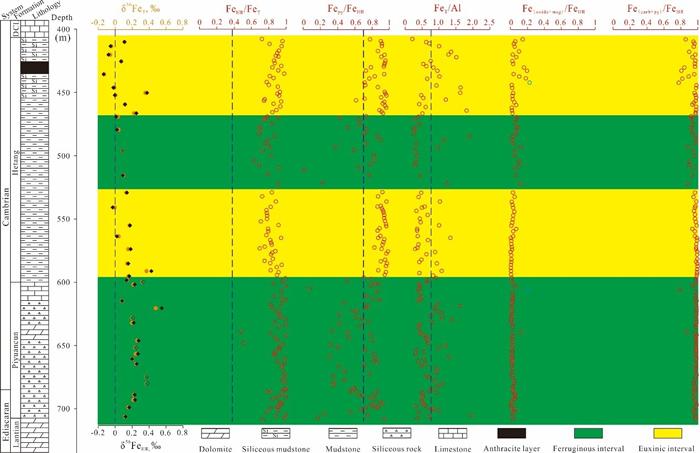 为进一步探讨这一时期中国南方海洋中铁的来源、迁移模式及沉淀机制等科学问题,需运用铁同位素等非传统同位素研究方法来进行示踪研究。为此,研究团队通过对淳页1井40件样品进行了铁同位素研究,并结合不同元素的比值等指标,发现:埃迪卡拉纪—寒武纪转折期的富铁海洋的铁库规模已经非常有限,与现代海洋大致接近。海洋Fe2+的主要供给源是大气尘埃和河流输送的铁,而非热液来源的铁。黄铁矿化,而非氧化作用主导了这一时期富铁海洋中Fe2+的主要沉淀作用。